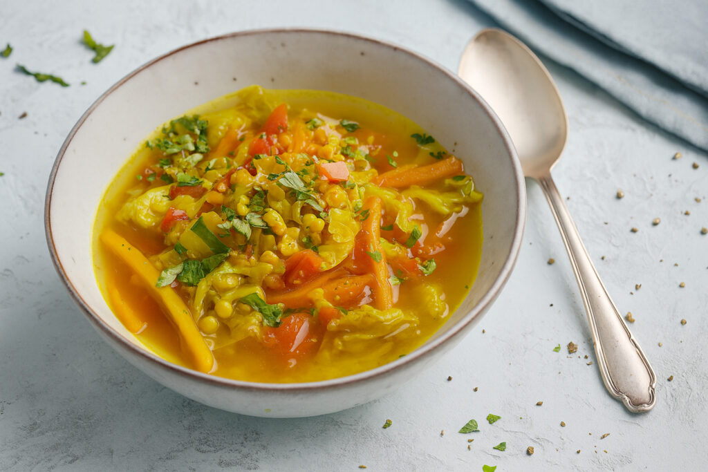 Táto zlatá kurkumová polievka so šošovicou je ako stvorená pre prechodné obdobia – jeseň, zima, skorú jar. Vďaka svojim ingredienciám má hrejivý, protizápalový a posilňujúci účinok, ideálny pre dni, keď telo túži po teple, výžive a rovnováhe.